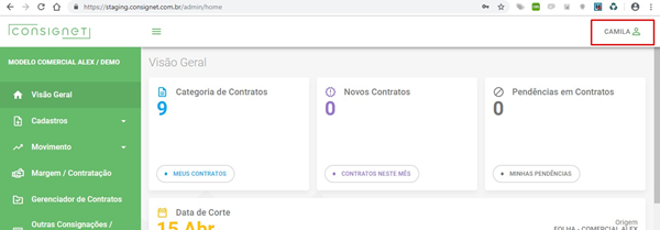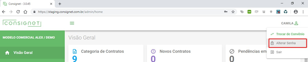 Para realizar a troca de senha de acesso, o usuário deverá clicar no ícone :