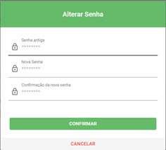 Nesta tela o usuário deverá informar a senha atual , uma nova senha e confirmar a nova senha .