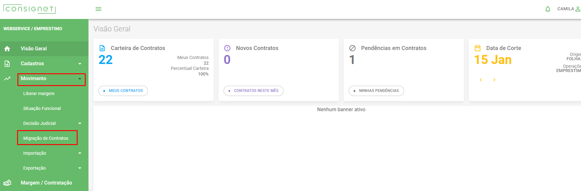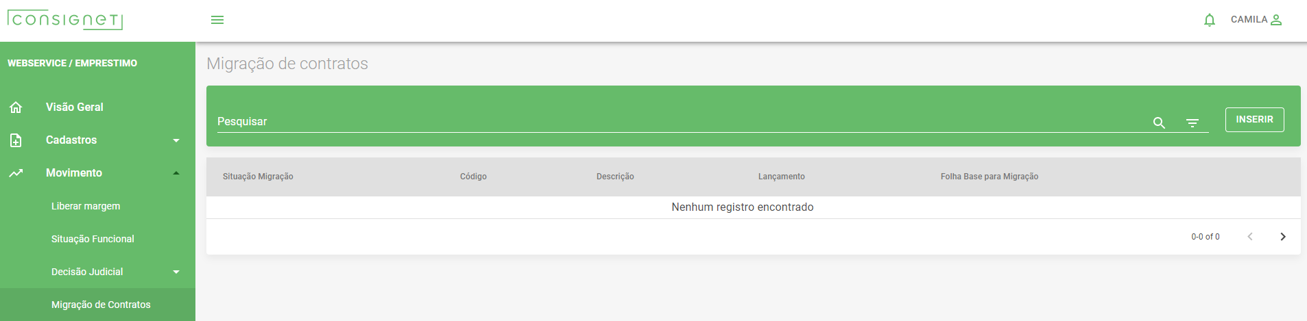 Para efetuar a Migração de Contratos no Consignet, acessar o menu: