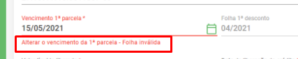 "Alterar o vencimento da 1ª parcela - Folha inválida"