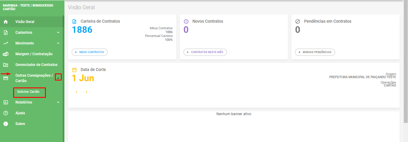 OUTRAS CONSIGNAÇÕES/CARTÃO > SOLICITAR CARTÃO