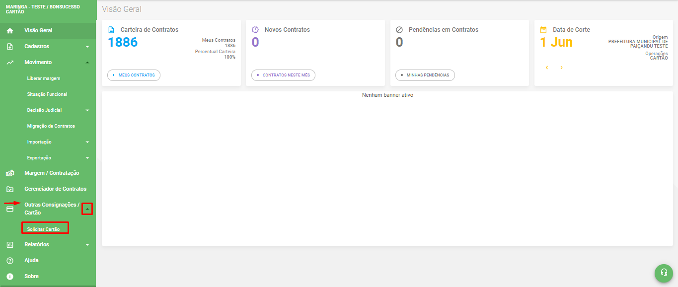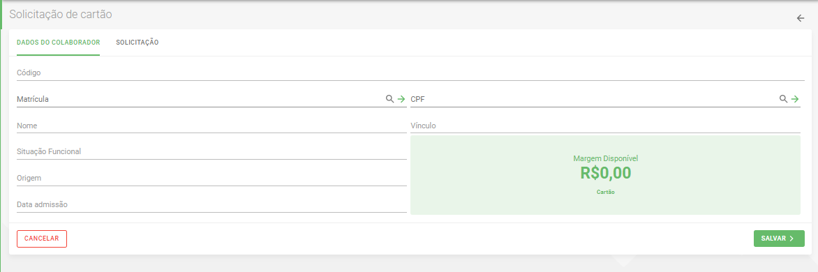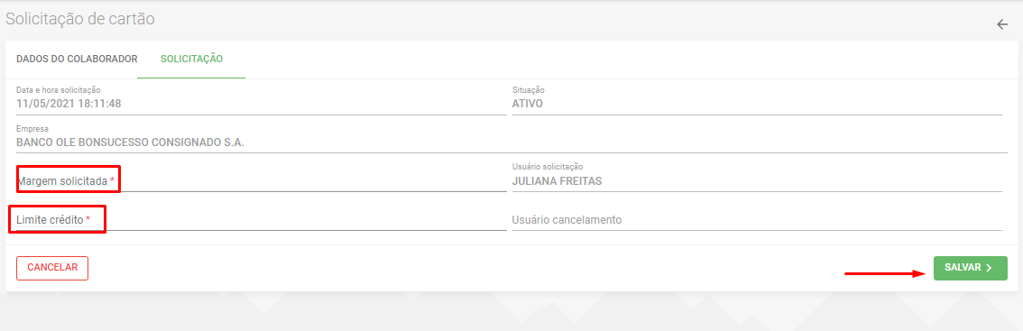 Para realizar a solicitação de margem de cartão, acesse o menu :