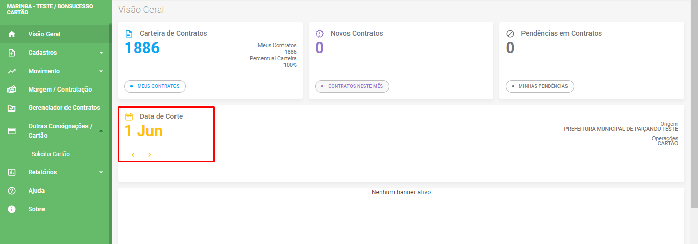 Para identificar a data de corte de um referido convênio, deverá logar no convênio desejado, e na tela de visão geral