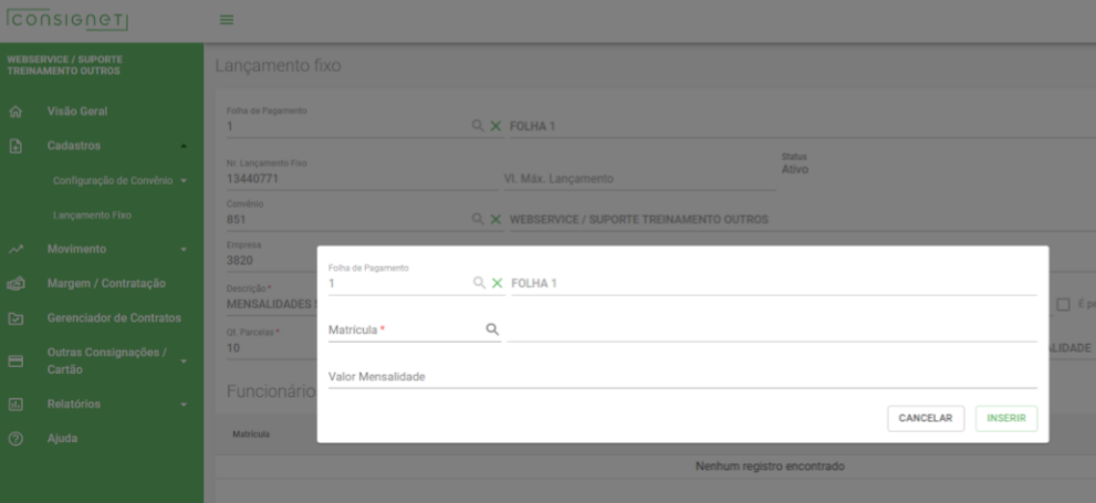 O processo de lançamento fixo, referente aos valores cobrados mensalmente, como mensalidade de associação, sindicato e entre outros descontos de valor fixo, poderá lançar pelo menu :