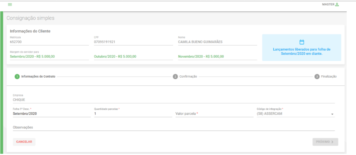 Logo abaixo terá a opção de CONSIGNAÇÃO SIMPLES ;