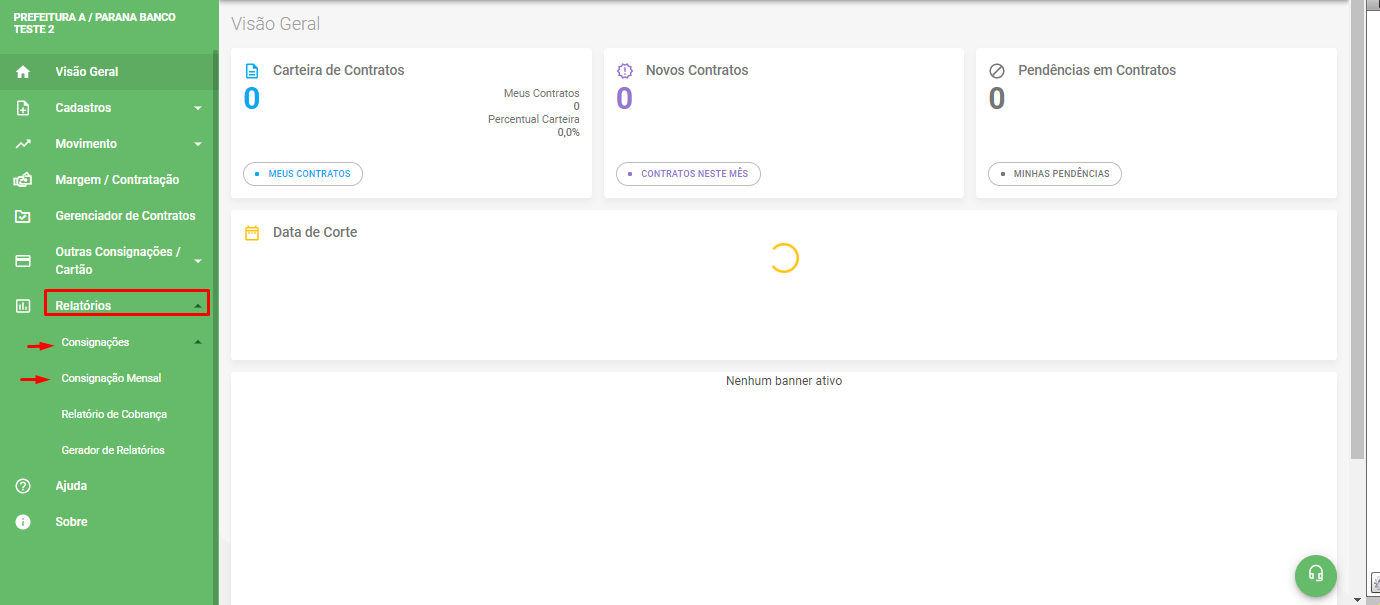 Para extrair o relatório de consignação mensal , deverá acessar o menu :